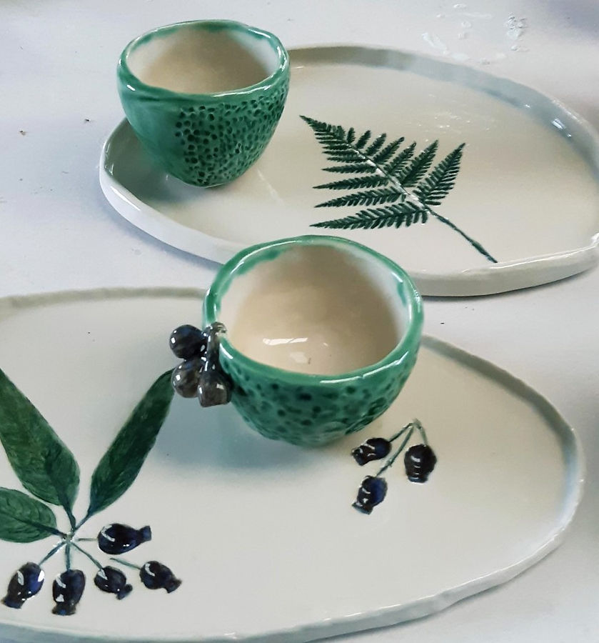 Handbuilding - Cheese Platter and Dip Bowl with wine, cheese & nibbles